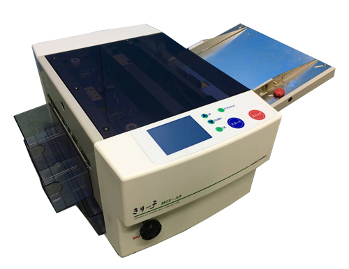 印刷された名刺をそのサイズにスピーディーにカットできる便利な機械。